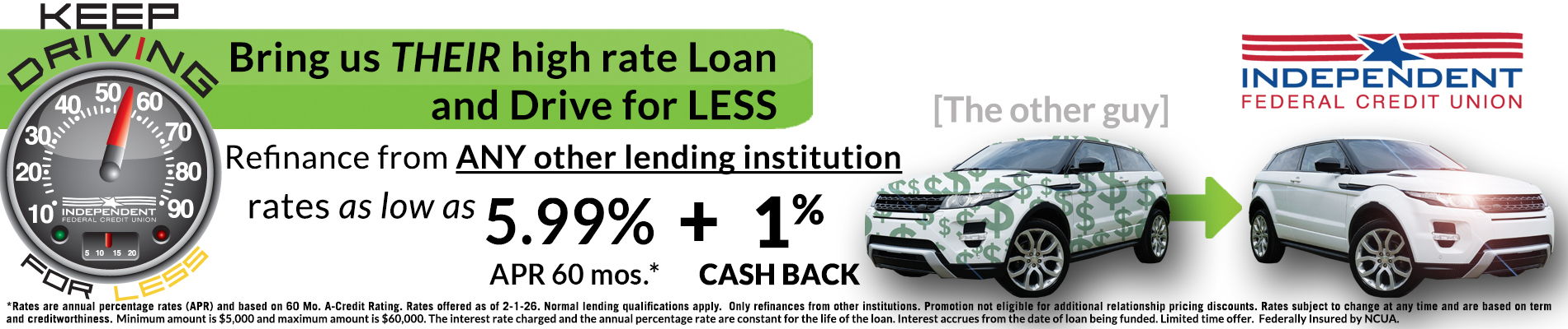Independent Federal Credit Union partners with local dealerships to offer you a wide variety of makes and models. New or used, Independent will help you get in the driver’s seat fast. By partnering with quality dealers, and financing with Independent; you can shop for your next car, truck, or van with confidence.